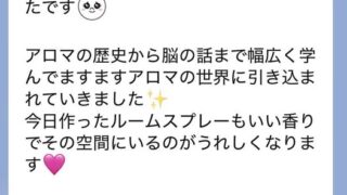 昨日の講義が終わって、本日いただいた感想ですナード・ジャパン認定校 aroma collegeパチュールアロマ・アドバイザー アロマ・インストラクター 養成校嬉しい感想です♬ありがとうございます♪正しい知識と正しい使い方を学んで、勇気を出し...