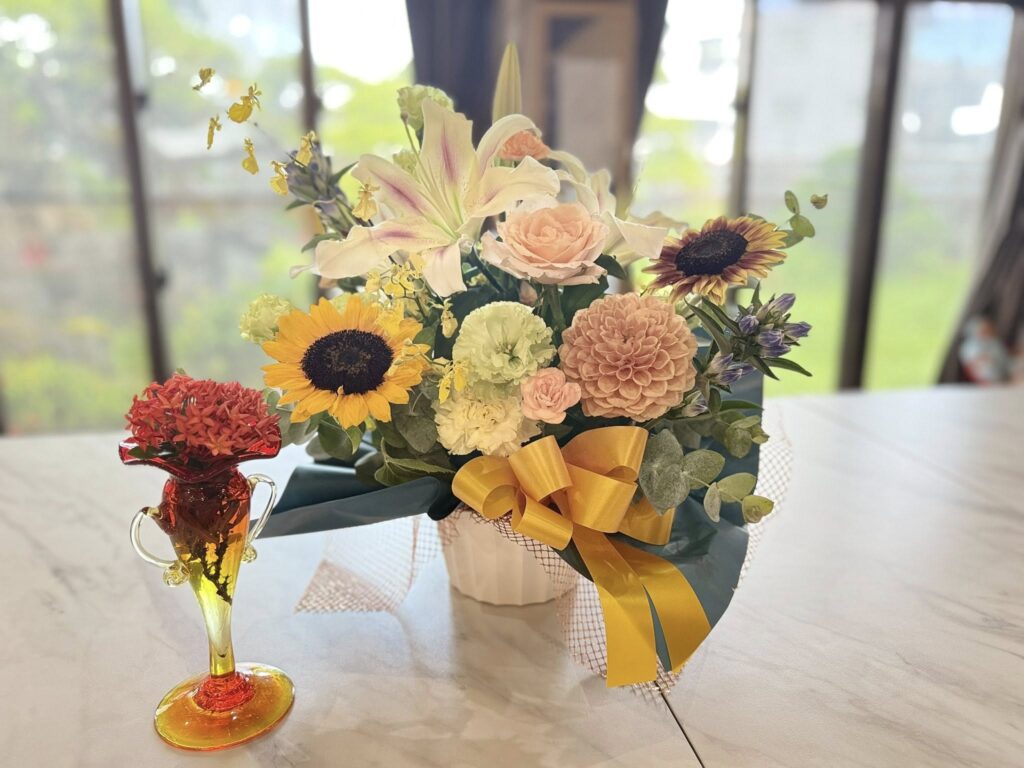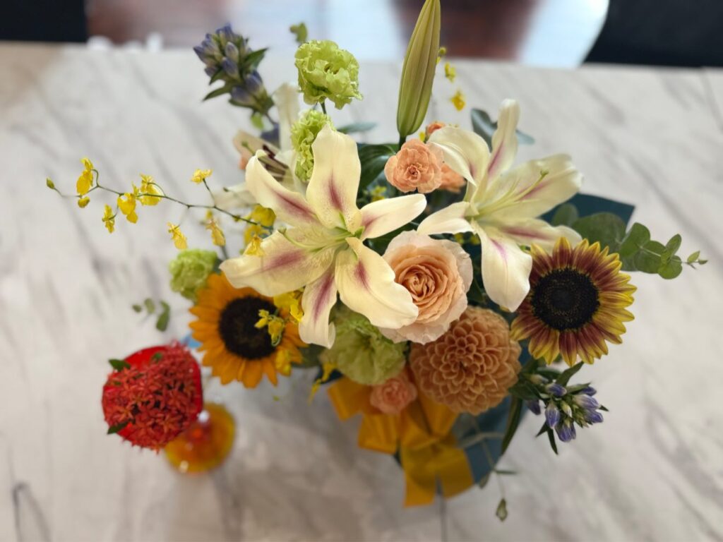 素敵なお花を頂きました🌸 パチュール沖縄News X Facebook はてブ Pocket LINE コピー 2025.08.012025.10.03 素敵なお花をありがとうございます 癒されるお花 やっぱり生花のある空間って良いなぁ 毎日、生花に囲まれたい🌸 来客の方や、生徒さんにも癒しをお届けします